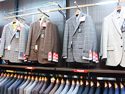 「D&G」や「アルマーニ」に代表されるイタリアからの直輸入ブランドスーツ、英国ジェントルマンの御用達「dunhil」「Ermenegildo Zegna」などの高級生地ブランドスーツ、ビジネスマンに人気の「スタイリッシュ・スーツ」「ツーパンツ・スーツ」「ウオッシャブル・スーツ」 などAからZまでの幅広い品揃えは他社にはマネのできないラインアップを実現しております。